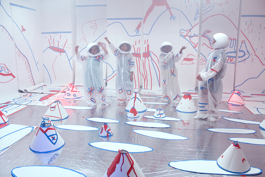L’idée est de questionner les enfants sur la notion de l’ « ailleurs », d’espaces inconnus ou fantasmés, et d’aboutir à la création d’un espace fictif, leur propre Mars. L’implication est non seulement plastique (objets, dessin, scénographie) mais aussi performative : chacun se crée un personnage, et se prépare pour un voyage à venir.